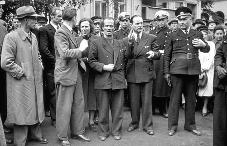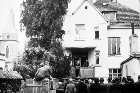 Bruno Gröning hält vom Balkon des Hauses Wilhelmsplatz 7 aus eine Ansprache.Erich Kuhlmann (links) und Egon Arthur Schmidt bringen die Informationstafel über das Heilverbot am Haus Wilhelmsplatz 7 an.Bis zu 5.000 Menschen strömten täglich zu Bruno Gröning nach Herford.Heilungssuchende vor dem Wohnhaus der Familie Hülsmann, Wilhelmsplatz 7, Bruno Grönings Aufenthaltsort in Herford.von links: Anneliese und Helmut Hülsmann mit Sohn Dieter, Bruno Gröning. Durch die Heilung des achtjährigen Dieter Hülsmann von progressiver Muskeldystrophie wurde Bruno Gröning im Frühjahr 1949 schlagartig bekannt.Täglich erreichen Bruno Gröning in Herford zahlreiche Bittbriefe aus aller Welt.Bruno Grönings Mitarbeiter Egon Arthur Schmidt (vorne) und Erich Kuhlmann lesen Bittbriefe von Hilfesuchenden.Informationstafel über Heilverbot: „Herr Gröning hat jetzt Totalverbot und darf im ganzen Lande Nordrhein-Westfalen keinerlei Heiltätigkeit ausüben!!!“Hilfesuchende, die auf das Eintreffen Bruno Grönings warten, verbringen die Nacht vor dem Haus.Allein bis Mitte Mai 1949 trafen mehr als 70.000 Briefe bei Bruno Gröning ein.