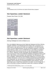 367. Passauer Neue Presse, 10.9.1949: "Kein Hypnotiseur, sondern Seelenarzt" - Textfassung