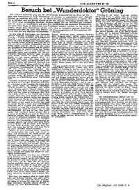153. Der Allgäuer, 3.9.1949: "Besuch bei 'Wunderdoktor' Gröning" - Textfassung