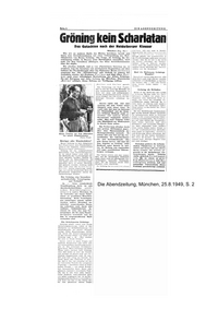 347. Die Abendzeitung, München, 25.8.1949: "Gröning kein Scharlatan" - Original