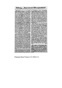 360. Passauer Neue Presse, 6.10.1949: Gröning: „Man hat mir Gift zugeschickt“ - Textfassung
