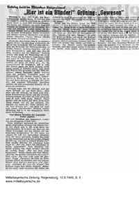 356. Mitelbayerische Zeitung, 12.9.1949: "Hier ist ein Blinder! Gröning: Gewesen" - Textfassung