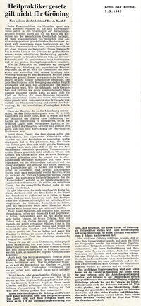 Echo der Woche, 9.9.1949: Heilpraktikergesetz gilt nicht für Gröning - Textfassung