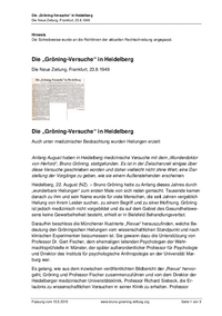 Die Neue Zeitung, 23.8.1949:"Die „Gröning-Versuche“ in Heidelberg" - Textfassung