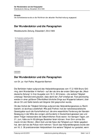 244. Westdeutsche Zeitung, 29.6.1949: Der Wunderdoktor und die Paragraphen" - Textfassung