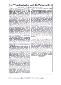 Westdeutsche Zeitung, 29.6.1949: Der Wunderdoktor und die Paragraphen" - Textfassung